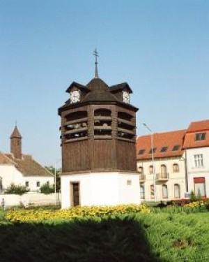 Az Óratoronynak is nevezett építmény különlegessége, hogy faácsolata vasszögek nélkül épült. Falán emléktábla őrzi az egykor Tatán tartott országgyűlés emléklét. 2004. augusztusa óta az idő múlását minden órában harangjátékkal jelzi.