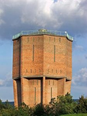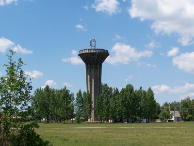 A kápolnától keletre található a 1968-ban épített, a város vízellátását szolgáló 500 m³–es víztorony. Tervezője Csaó Imre volt, jellegzetes tömbszerű, sokszögű, vakolatlan tégla falazatú torony, 30 méteres magasságával hozzátartozik a domb látványához. Napjainkban a torony műemléki védettséget kapott, és az üzemeltető vízmű nemcsak műszaki létesítményként használja, hanem a toronybelső nagy terében alkalmanként kiállításokat, sőt - az épület kiváló akusztikájának köszönhetően - hangversenyeket is rendeznek.