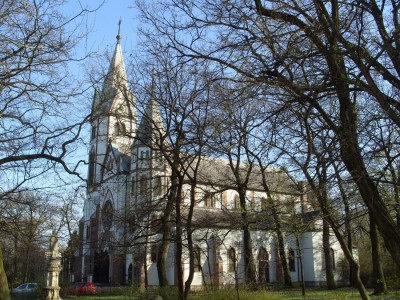 A háromhajós templom maradványait imitáló rom romantikus stílusban épült. Egy francia építész, Charles Moreau nevéhez köthető az Angolpark északi részén található műremek.