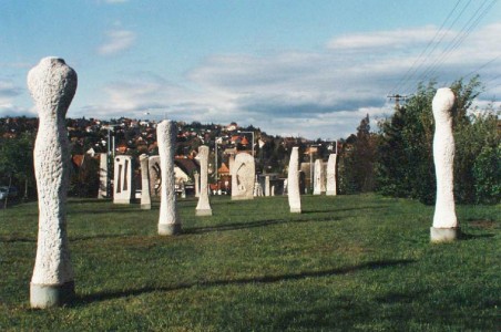 A 11-es út mentén kialakított nagy parkban található szobrok alkotója a Visegrádon élt Mészáros Dezső (1923–2003), Áprily Lajos költő veje. Az itt látható, a figurativitás és a nonfigurativitás határán lévő, általában két méter magasságú, több tonnás kőszobrok az antik szobrok 20. századi rokonai.