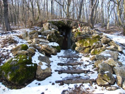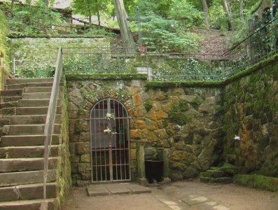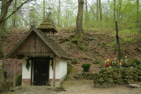 1774-ben építette Steinmüller Mátyás pilisvörösvári molnár. A rokokó stílusú oltárt téglából építették. Látogatható: húsvétvasárnap hajnalban.