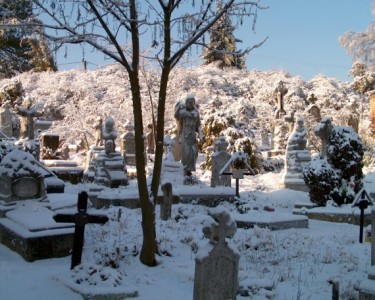 A 18. században épült barokk templom, kertjében 18-19. századi síremlékek találhatók.