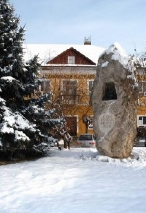 Az 1955-ben megépült iskola bejáratához – amely a város első középiskolája volt – 1960-ban helyezték el Szabados Béla (1894–1970) azóta is ott álló szobrát.
