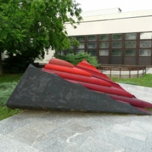 A fővárosból Szentendrére érkezők már a város szélén, a Magyar Központi Tiszthelyettes Szakképző Iskola (korábban Kossuth Lajos Katonai Főiskola) Kossuth Galériája az út mellett 1985 óta megnézhet egy érdekes szobrot. Egy vadászrepülőre emlékeztető, poliészterből készült nagy posztamensen álló térplasztikát. Alkotója Paizs László (1935–2009) modern köztéri alkotásairól ismert. Sajnos a poliészter szobrok gyorsan kopnak, azért a miénk még tartja magát.