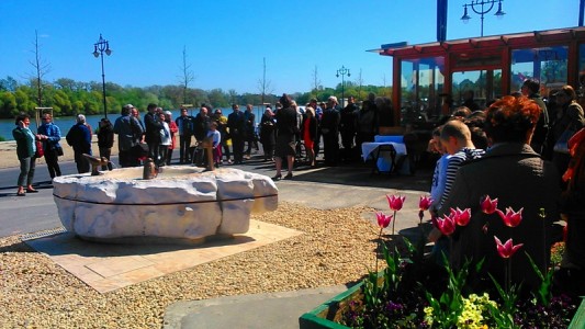 A régi Lepencei strandnál található, a Duna partján, a főút közvetlen közelében. Szépen helyre van állítva, tábla is tájékoztat róla, hogy mit látunk.